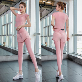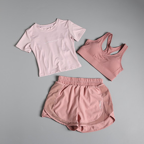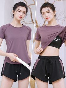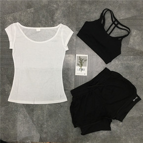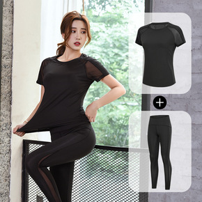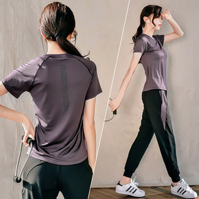 夏季瑜伽服运动套装女休闲跑步速干衣健身房衣服短袖短...