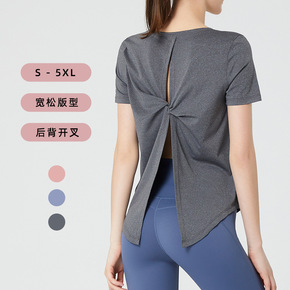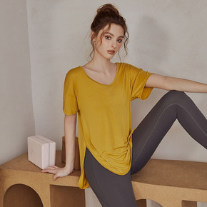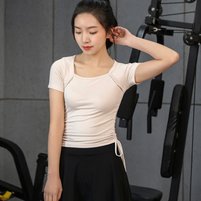2022春款运动上衣女侧边抽绳短袖修身显瘦健身T恤...