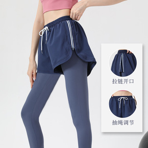 2022新款外贸运动瑜伽健身短裤女假两件仿走光口袋...
