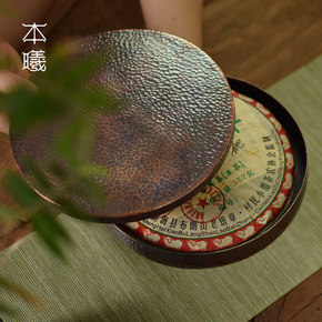 紫铜手工锤纹茶饼盒普洱黑茶白茶茶叶盒收纳存储器茶叶...