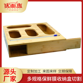 竹木厨房保鲜膜锡箔纸切割器厨房抽屉式木质收纳袋保鲜...