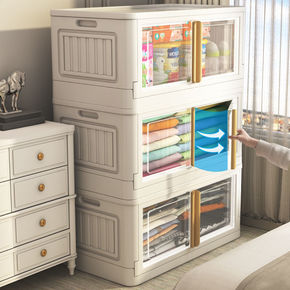 双开门收纳箱家用衣物整理箱塑料衣柜儿童玩具书本可折...