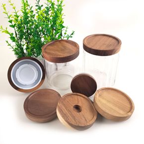 玻璃瓶储物罐相思木盖实木玻璃罐盖木质粮食谷物收纳密...