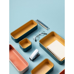 简约桌面塑料收纳盒多格组合整理盒家用学生桌面首饰储...