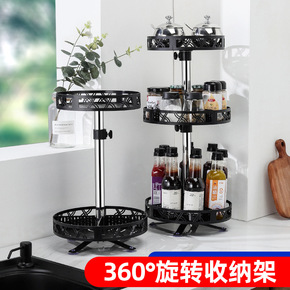 塑料置物架旋转蔬菜免安装 厨房落地多层储物篮放菜架...