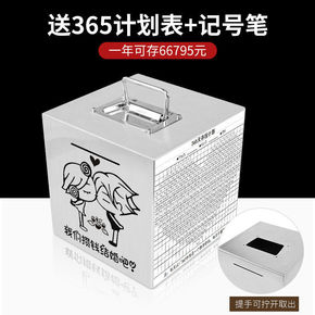 不锈钢儿童存钱罐密码箱带锁可取储蓄硬币纸币储钱箱防...