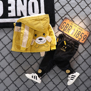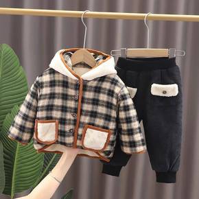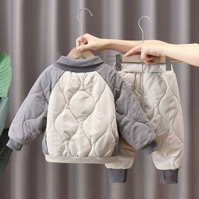 宝宝棉服套装冬装洋气男小童棉袄时髦儿童加绒加厚两件...