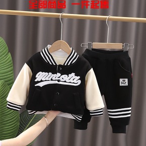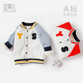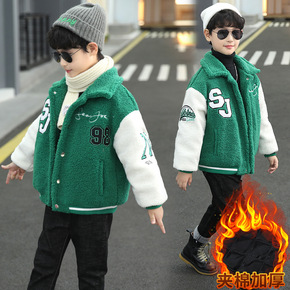 童装2021秋冬装新款男童韩版棒球服夹棉毛毛衣上衣...