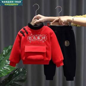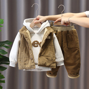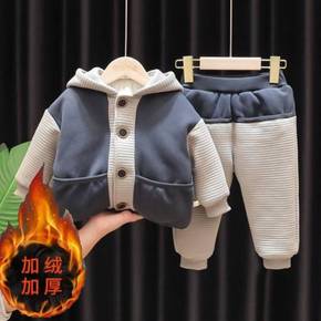 童装男童套装2021秋冬装新款婴儿童卫衣三件套加绒...