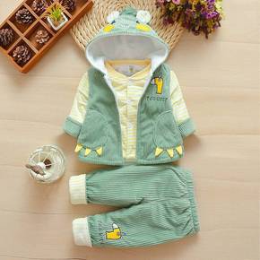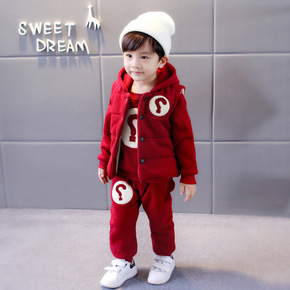 男童装加绒加厚三件套装秋儿童男孩宝宝冬装衣服女1岁...