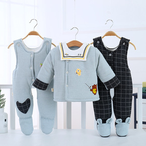 新生儿衣服秋冬季婴儿夹棉保暖套装初生宝宝薄棉衣分体...