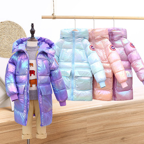 2020新款反季儿童羽绒棉服中长款炫彩中大童冬装女...