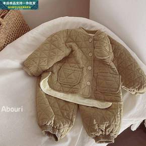 儿童童装新款男童加棉套装秋冬装女宝宝棉服两件套婴儿...