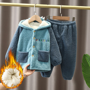 儿童睡衣2021冬季新款宝宝加绒加厚法兰绒家居服小...
