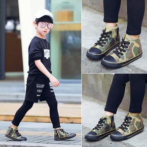 22炫酷迷彩高帮儿童帆布鞋男童女童鞋子系带学校野外...