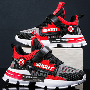 跨境男童鞋男童运动鞋秋冬飞织透气中大童网鞋软底轻便...