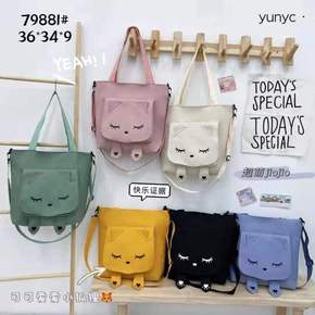 新款补课袋中学生小学生卡通可爱猫咪简约女生包单肩斜...