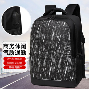 跨境男士商务出差背包大容量防泼水双肩包USB充电多...