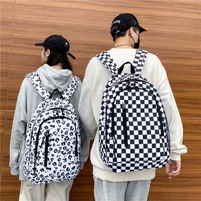 2022经典格子书包女日韩大容量双肩包文艺学院风高...