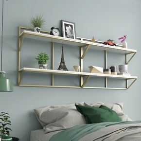 北欧上墙置物架墙壁装饰架金色双层书架客厅花架搁板厨...