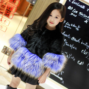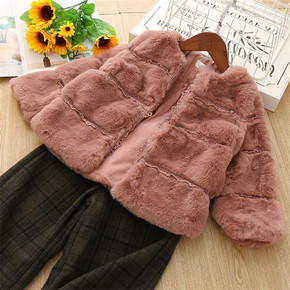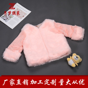 批发秋冬儿童皮草韩版女童宝宝兔毛仿皮草外套短款中小...