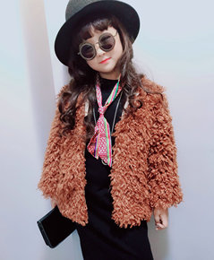 女童皮草外套2019冬装新款中大童仿滩羊毛上衣儿童...