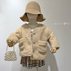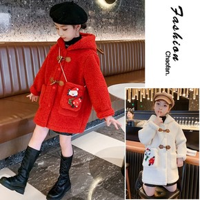 潮西西女童冬季新款羊羔毛外套加厚绒里韩版外套时尚i...