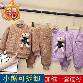 女童冬季加厚套装韩版宝宝加绒男童两件套儿童保暖棉服...