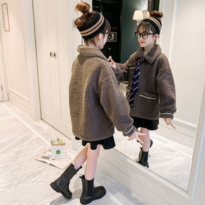 女童羊羔绒外套秋冬儿童羊羔毛大衣冬装2021新款加...