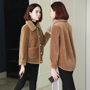 羊羔绒外套女2021新款加厚保暖颗粒绒皮毛一体仿羊...