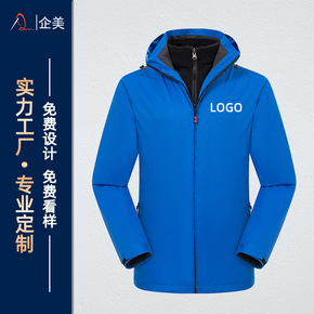 冲锋衣工作服男女防风防水反光条印logo加绒抗寒服...