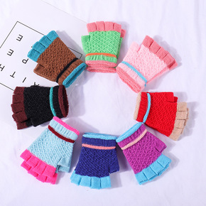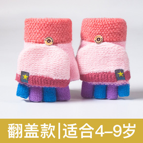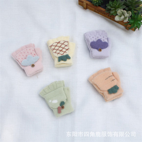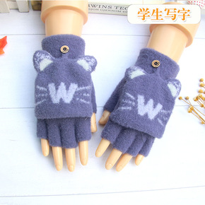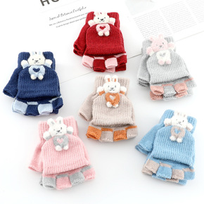 儿童半指翻盖手套冬季韩版可爱卡通兔子男童女童小孩小...