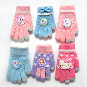 迪士尼正版授权冰雪奇缘苏菲亚公主触屏薄绒秋冬毛线女...