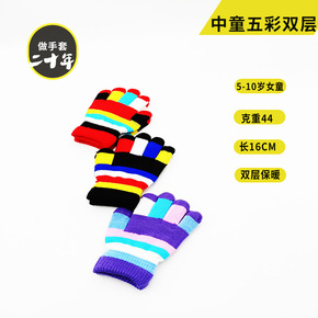 秋冬儿童触屏保暖加厚跨境针织魔术手套小孩手套...