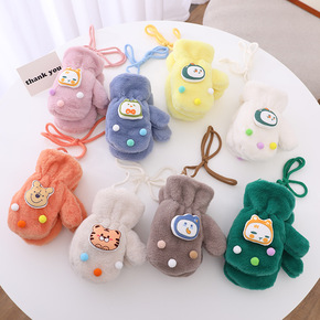 儿童手套冬季保暖防寒柔软宝宝可爱卡通加厚绒包指防风...