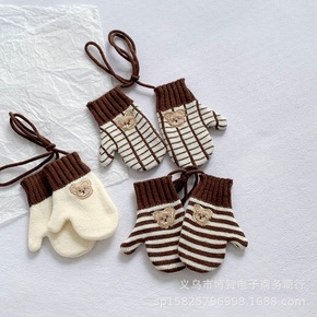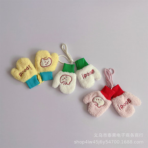 ins风儿童连指手套 超萌小熊贴标可爱宝宝糖果色兔...