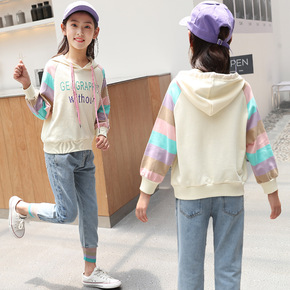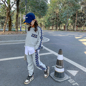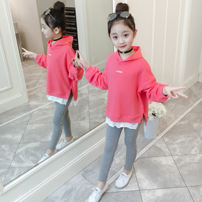 2022新款女童春秋套装时尚个性洋气网红拼色连帽卫...
