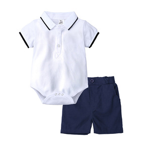 2022夏季新款婴儿珠地棉翻领连体哈衣短裤套装婴儿...