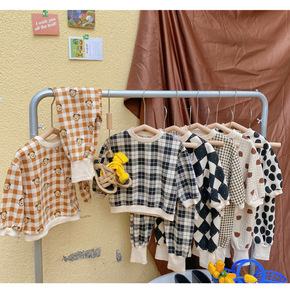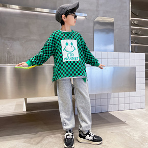 韩国童装2022春季新款儿童字母笑脸运动套装男女童...