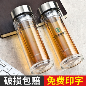 新款大容量双层玻璃杯保温杯 高档商务水杯 广告礼品...
