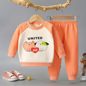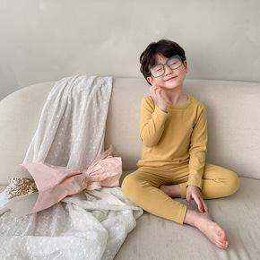 儿童家居服宝宝睡衣套装潮2021秋冬男女童纯色秋衣...