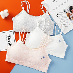 青春期初中生发育期内衣 少女款彩棉吊带抹胸带胸垫女...