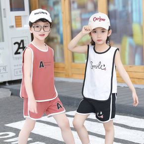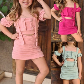 春夏女童套装新款 一字肩上衣可调节肩带短裙中小童两...