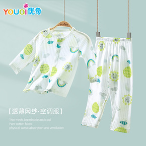 宝宝夏季套装婴儿夏装空调服长袖衣服薄款分体两件套睡...