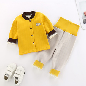 婴儿复古棉秋衣秋裤套装儿童内衣男童开衫款宝宝高腰护...