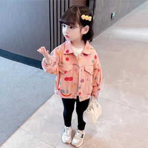 预售女童牛仔外套洋气秋季时髦印花儿童秋装女宝宝上衣...