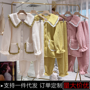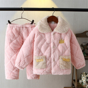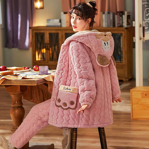 珊瑚绒睡衣女秋冬季三层加厚夹棉袄加绒保暖家居服法兰...