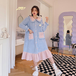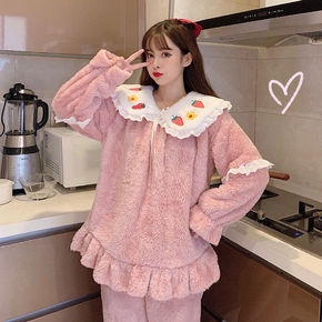 300斤加肥加厚睡衣女秋冬季娃娃领长毛保暖法兰绒宽...