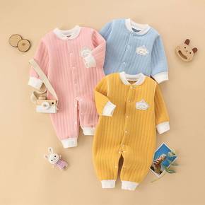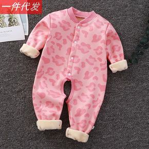 婴儿长袖睡衣定制夹棉秋冬装宝宝哈衣家居服两件套新生...