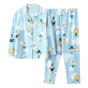 2022春秋款睡衣女孩蓝色春季睡衣牛奶丝180克加...